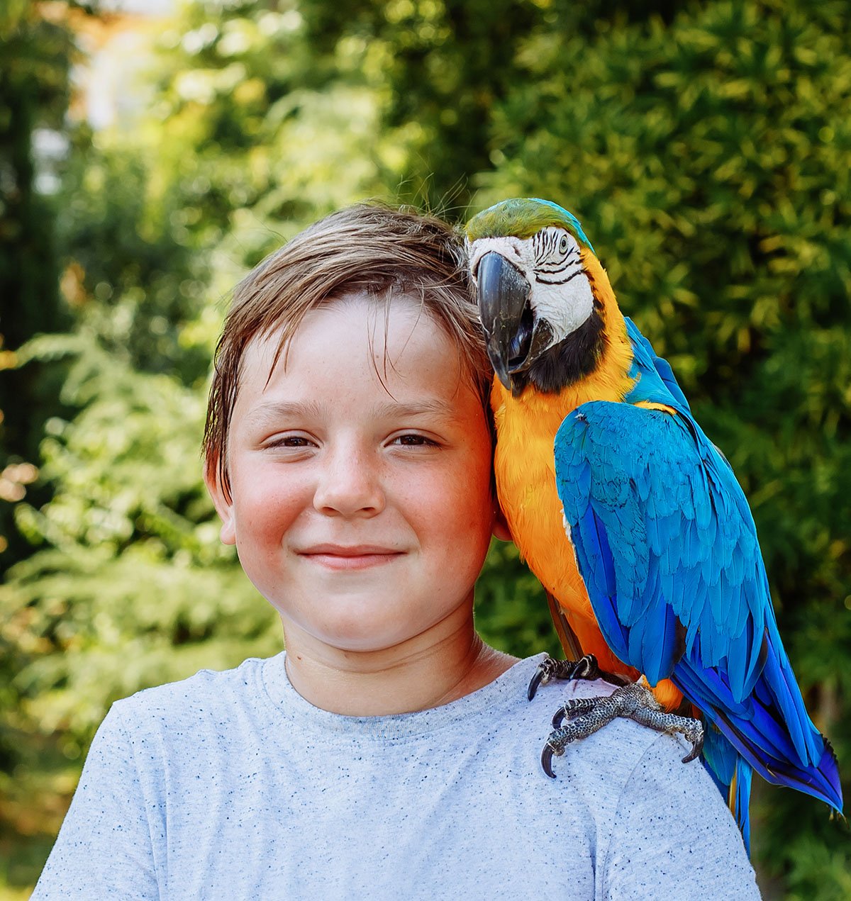 Experience the magic of hands-on entertainment with our friendly Macaws, Cockatoos, and Conures. From unforgettable kids’ parties to our dedicated nonprofit rescue mission in PA, NJ, NY, and MD, we bring the joy of birds right to your shoulder.